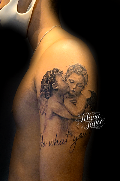 FIRST KISSのファインライン ・タトゥー タトゥー 一覧 > Tattoo by Naoto 2020.11.11 ファーストキスの絵画をファインラインで再現したタトゥー。所要時間の目安は8時間前後です。 Style ファインライン メンズ チカーノ・ブラック&グレイ 洋柄 Motif 天使・悪魔 Size CDジャケット Body parts 腕