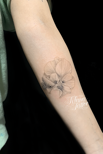 熱帯魚|ベタとパンジーのファインライン・タトゥー タトゥー 一覧 > Tattoo by AKI 2023.07.05 熱帯魚|ベタ、パンジーの花をひとつのデザインにまとめたファインライン・タトゥー。所要時間の目安は3時間半前後です。 Style ファインライン ガールズ 洋柄 Motif 水の生き物 植物 Size タバコサイズ Body parts 腕