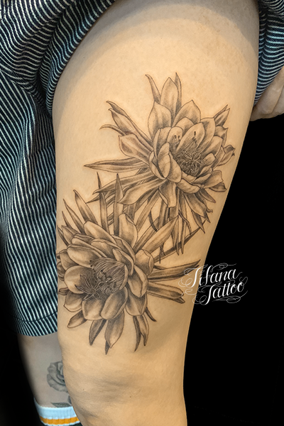 月下美人のタトゥー タトゥー 一覧 > Tattoo by Mica 2022.12.16 月下美人の花をモチーフにしたタトゥー。所要時間の目安は 7時間前後です。 Style ガールズ 洋柄 Motif 植物 Size B5サイズ以上 Body parts 脚