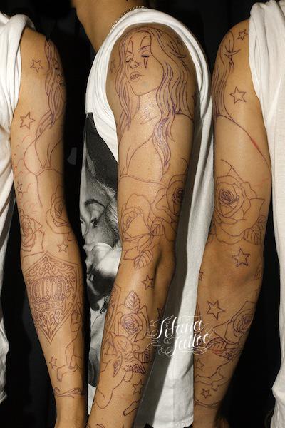 フルスリーブ|9分|製作進行中 タトゥー 一覧 > Tattoo by Mica 2015.06.19 クラウン・ガール、王冠、バラなどのモチーフで現在製作進行中のフルスリーブタトゥーです。 Style メンズ チカーノ・ブラック&グレイ Size 7分~フルスリーブ Body parts 腕