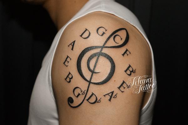 ト音記号とアルファベットのタトゥー タトゥー 一覧 > Tattoo by Mica 2015.09.10 ト音記号の周囲を円形に連なるアルファベットでデザインしたタトゥー|刺青作品です。所要時間の目安は2時間前後です。 Style メンズ 洋柄 Motif 文字・数字 音楽 Size CDジャケット Body parts 肩