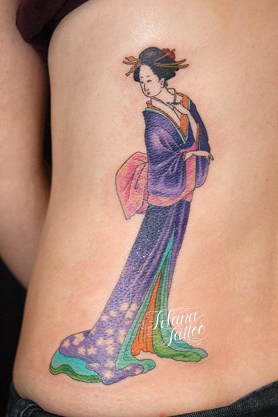 Geisha Girl Tattoo タトゥー 一覧 > Tattoo by Mica 2015.01.20 腰の部位に芸者のデザインを彫ったタトゥー|刺青作品です。所要時間の目安は4時間半前後、1回で完成するサイズです。 Style ガールズ 和柄 Size B5サイズ以上 Body parts 腰
