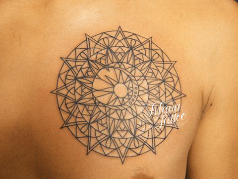 幾何学模様のタトゥー タトゥー 一覧 > Tattoo by Mica 2015.01.12 円形の幾何学模様をデザインしたタトゥー|刺青作品です。所要時間の目安は2時間前後、1回で完成可能なサイズです。 Style メンズ 洋柄 Motif 図形 Size CDジャケット Body parts 胸