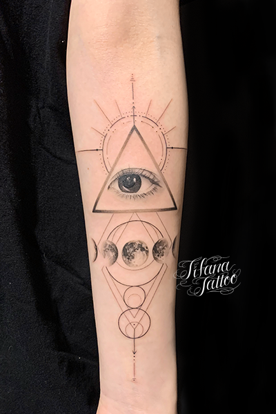 月の満ち欠け|目のジオメトリック・タトゥー タトゥー 一覧 > Tattoo by AKI 2022.06.14 月の満ち欠け、目、幾何学模様をひとつのデザインにまとめたファインライン・タトゥー。所要時間の目安は6時間前後です。 Style ファインライン ガールズ 洋柄 Motif 宇宙 人体パーツ 図形 Tattoo Tag 幾何学模様 月 目 Size CDジャケット Body parts 腕