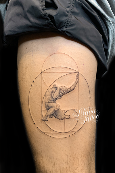 ジオメトリック・ファインライン・タトゥー タトゥー 一覧 > Tattoo by AKI 2024.05.21 極細の針|シングルニードルで繊細な表現を実現したファインライン・タトゥー。所要時間の目安は5時間半前後です。 Style ファインライン メンズ 洋柄 Motif 図形 Size CDジャケット Body parts 脚