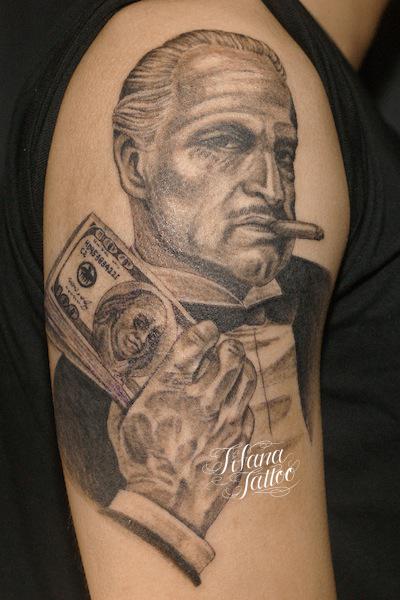 God Father Tattoo タトゥー 一覧 > Tattoo by Mica 2016.11.29 God Fatherの映画の一コマをポートレイトで仕上げたタトゥー|刺青作品です。所要時間の目安は5時間前後です。 Style メンズ チカーノ・ブラック&グレイ 洋柄 Motif ポートレイト Size B5サイズ以上 Body parts 腕