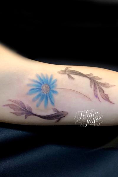 金魚と花のタトゥー タトゥー 一覧 > Tattoo by Mica 2020.09.05 金魚、花|植物のモチーフをひとつのデザインにまとめたタトゥー。所要時間の目安は4時間前後です。 Style ガールズ 和柄 Motif 水の生き物 植物 Size CDジャケット Body parts 腕