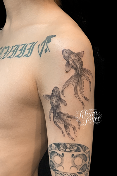 和柄金魚のタトゥー タトゥー 一覧 > Tattoo by Mica 2023.03.22 金魚のモチーフを麻模様にデザインした和柄のタトゥー。所要時間の目安は4時間前後です。 Style メンズ 和柄 Motif 水の生き物 Size CDジャケット Body parts 腕