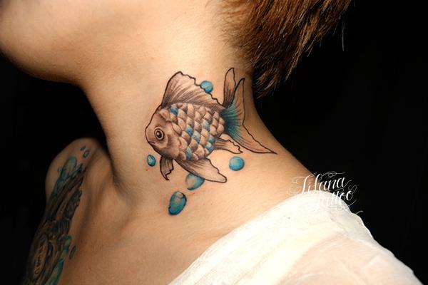 金魚のタトゥー タトゥー 一覧 > Tattoo by Kaz 2015.01.11 金魚のモチーフを女性向けにデザインしたタトゥー|刺青作品です。所要時間の目安は1時間半前後、1回の施術で完成するサイズです。 Style ガールズ 和柄 Motif 水の生き物 Tattoo Tag 金魚 Size タバコサイズ Body parts 首