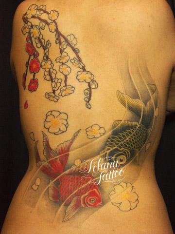金魚の刺青作品 タトゥー 一覧 > Tattoo by Mica 2015.01.11 赤・黒の金魚の絵柄をデザインしたタトゥー|刺青作品です。所要時間の目安は15時間前後、3回から4回の施術で完成するサイズです。 Style ガールズ 和柄 Motif 水の生き物 Tattoo Tag 金魚 Size 背中一面 Body parts 背中