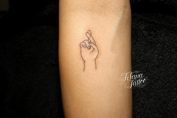 グッドラックのサイン・タトゥー タトゥー 一覧 > Tattoo by Mica 2015.03.08 幸運|グッドラックのサインのデザインを彫ったワンポイントタトゥーです。所要時間の目安は10分前後です。 Style ガールズ 洋柄 Motif 人体パーツ ラッキーアイテム Size ワンポイント Body parts 腕