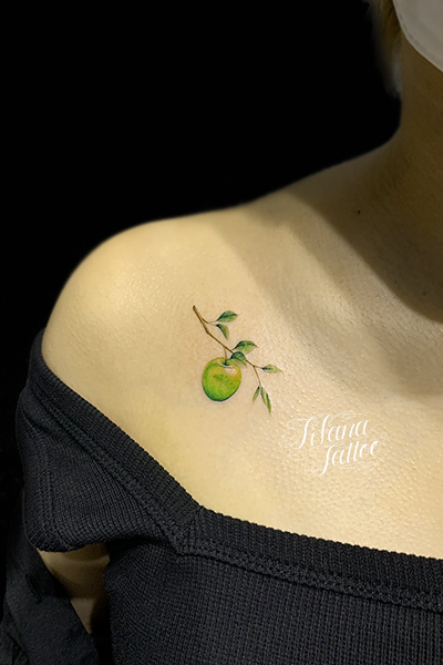 青リンゴのファインライン・タトゥー タトゥー 一覧 > Tattoo by AKI 2021.10.06 青リンゴのモチーフを繊細なデザインにアレンジしたファインライン・タトゥー。所要時間の目安は3時間前後です。 Style ファインライン ガールズ 洋柄 Motif 植物 Tattoo Tag リンゴ Size タバコサイズ Body parts 胸