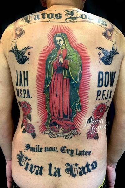 グアダルーペのタトゥー タトゥー 一覧 > Tattoo by Mica 2020.10.09 グアダルーペ|マリア様がモチーフのチカーノタトゥー。所要時間の目安は25時間前後です。 Style メンズ チカーノ・ブラック&グレイ 洋柄 Motif 世界の神様 Tattoo Tag 聖母マリア Size 背中一面 Body parts 背中