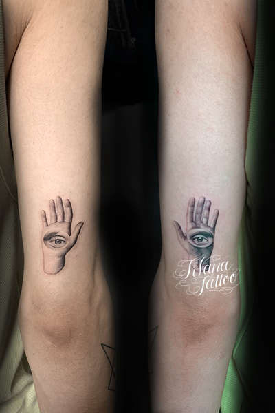 手|目のタトゥー タトゥー 一覧 > Tattoo by AKI 2020.06.15 手と目をモチーフにしたシンメトリータトゥー。所要時間の目安は4時間前後です。 Style メンズ チカーノ・ブラック&グレイ 洋柄 Motif 人体パーツ Tattoo Tag 目 Size iphoneサイズ Body parts 腕