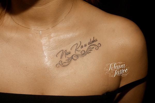 ハワイ語のガールズタトゥー タトゥー 一覧 > Tattoo by Naoto 2019.07.01 ハワイ語のレタリングに女性らしいオーナメントの模様をデザインしたガールズタトゥーです。所要時間の目安は1時間半前後です。 Style ガールズ レタリング Motif 文字・数字 Size タバコサイズ Body parts 胸
