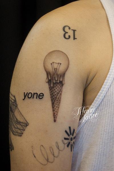 アイスクリームのタトゥー タトゥー 一覧 > Tattoo by AKI 2021.12.10 アイスクリームをモチーフにしたファインライン・タトゥー。所要時間の目安は3時間半前後です。 Style ファインライン メンズ 洋柄 Motif ラッキーアイテム Tattoo Tag ハワイ語 Size iphoneサイズ Body parts 腕