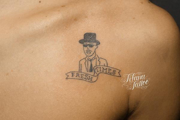 持ち込みデザインのタトゥー タトゥー 一覧 > Tattoo by Mica 2019.11.22 持ち込みデザインのイラストを彫ったタトゥーです。所用時間の目安は1時間未満です。 Style メンズ 洋柄 Motif 文字・数字 Tattoo Tag 持込デザイン Size タバコサイズ Body parts 胸