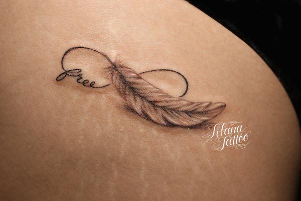 無限大の記号|羽|文字のタトゥー タトゥー 一覧 > Tattoo by Mica 2015.09.21 無限大の記号|インフィニティーのマーク、羽|フェザー、文字をひとつのデザインにまとめたガールズタトゥーです。 Style ガールズ 洋柄 Motif 羽・翼 ロゴ・マーク Tattoo Tag インフィニティ、無限大 Size タバコサイズ Body parts 脚