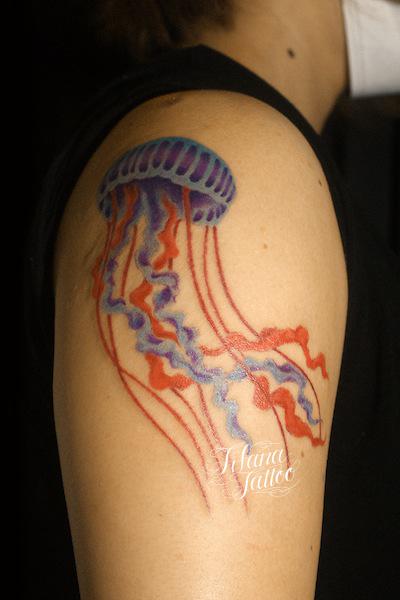 クラゲのタトゥー タトゥー 一覧 > Tattoo by Mica 2019.04.18 クラゲのモチーフをデザインしたタトゥー| 刺青作品です。所要時間の目安は3時間前後です。 Style メンズ 洋柄 Motif 水の生き物 Size CDジャケット Body parts 肩