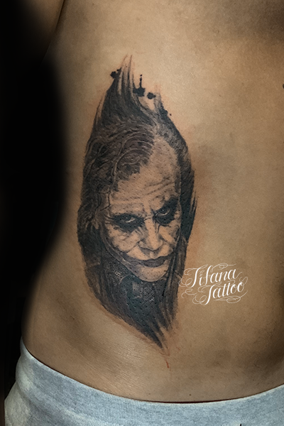ヒース・レジャー|ジョーカーのタトゥー タトゥー 一覧 > Tattoo by Mica 2021.03.01 ヒース・レジャー|ジョーカーがモチーフのポートレート・タトゥー。所要時間の目安は7時間前後です。 Style メンズ チカーノ・ブラック&グレイ 洋柄 Motif ポートレイト Body parts 腹