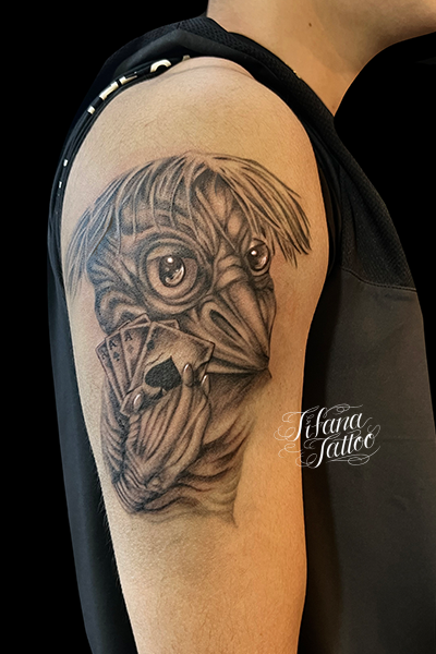 河童|トランプのタトゥー タトゥー 一覧 > Tattoo by Kaz 2024.07.10 河童、スペードのトランプをひとつのデザインにまとめたタトゥー。所要時間の目安は7時間前後です。 Style メンズ 和柄 Motif ファンタジー Size B5サイズ以上 Body parts 腕