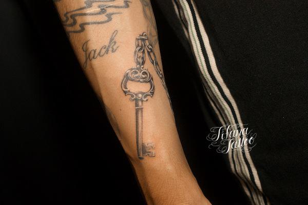 鍵のタトゥー タトゥー 一覧 > Tattoo by Naoto 2019.11.06 チェーンのついたアンティークな鍵のモチーフをデザインしたタトゥー。所要時間の目安は2時間前後です。 Style メンズ チカーノ・ブラック&グレイ 洋柄 Motif アクセサリー Tattoo Tag 鍵 Size iphoneサイズ Body parts 腕