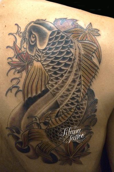 鯉|紅葉のタトゥー|刺青作品 タトゥー 一覧 > Tattoo by Yosh 2015.01.27 鯉のモチーフに波、紅葉をデザインしたタトゥー|刺青作品です。所要時間の目安は7時間前後、1回から2回で完成するサイズです。 Style メンズ 和柄 Motif 水の生き物 Tattoo Tag 鯉 Size B5サイズ以上 Body parts 肩 背中