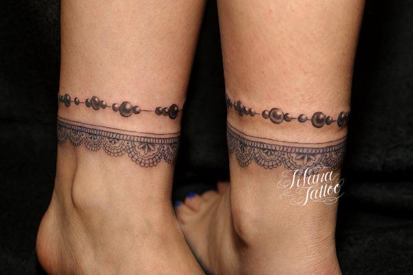 レースと数珠のタトゥー タトゥー 一覧 > Tattoo by Mica 2016.05.15 レース柄と数珠を組み合わせてデザインした足首一周のガールズタトゥーです。所要時間の目安は3時間前後です。 Style ガールズ 洋柄 Motif アクセサリー Size CDジャケット Body parts 足