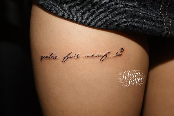 レタリングと花のタトゥー タトゥー 一覧 > Tattoo by Mica 2017.01.15 レタリングと花をひとつのデザインにまとめたガールズタトゥーです。所要時間の目安は1時間未満です。 Style ガールズ レタリング Motif 文字・数字 Size タバコサイズ Body parts 脚