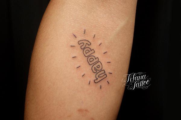 Happy Tattoo タトゥー 一覧 > Tattoo by Mica 2018.12.04 HAPPYの文字をデザインしたレタリングタトゥーです。所要時間の目安は30分前後です。 Style メンズ レタリング Motif 文字・数字 Size ワンポイント Body parts 腕