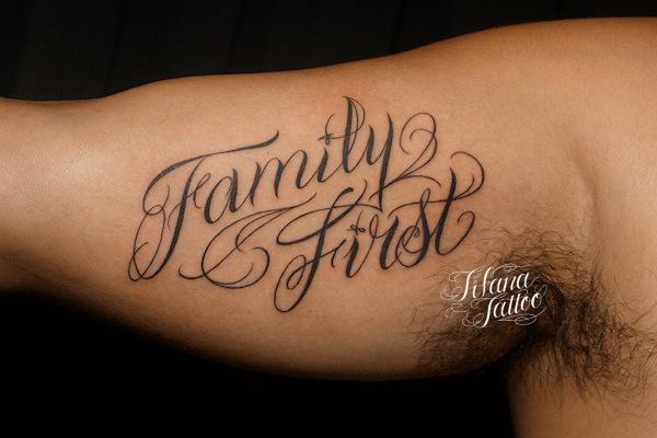 レタリングタトゥー タトゥー 一覧 > Tattoo by Naoto 2019.04.03 [Family First] ファミリーを第一にという意味を持つ文字|レタリングタトゥーです。所要時間の目安は2時間前後です。 Style メンズ チカーノ・ブラック&グレイ レタリング Motif 文字・数字 Size iphoneサイズ Body parts 腕