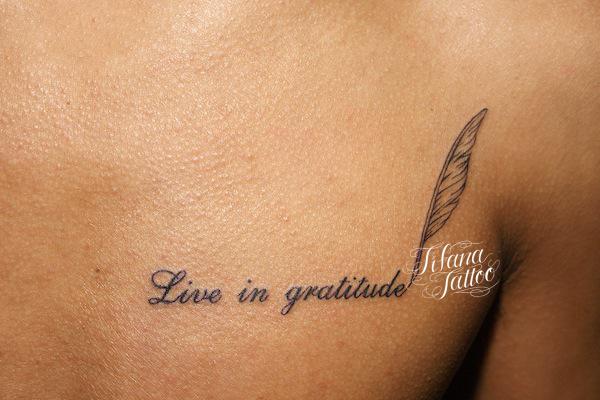 文字|羽のタトゥー タトゥー 一覧 > Tattoo by Mica 2016.01.25 羽ペンで書いた文字のデザインを彫った胸の部位のタトゥー|刺青作品です。所要時間の目安は40分前後です。 Style メンズ レタリング Motif 文字・数字 Size タバコサイズ Body parts 胸