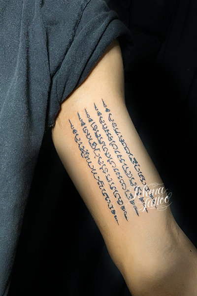サクヤンタトゥー タトゥー 一覧 > Tattoo by Naoto 2021.08.20 持ち込みデザインのタイのサクヤンタトゥー。所要時間の目安は3時間前後です。 Style メンズ レタリング Motif 文字・数字 Body parts 腕