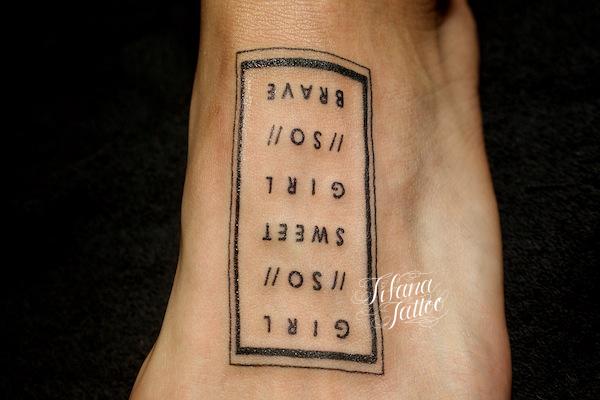 レタリングタトゥー タトゥー 一覧 > Tattoo by Mica 2021.12.15 枠で囲った文字|レタリングタトゥー。所用時間の目安は1時間前後です。 Style レタリング Motif 文字・数字 Size タバコサイズ Body parts 足