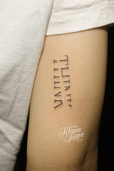 Lettering Tattoo タトゥー 一覧 > Tattoo by Mica 2016.02.12 腕の部位に彫った文字|レタリングのタトゥー|刺青作品です。所要時間の目安は20分前後です。 Style ガールズ レタリング Motif 文字・数字 Size ワンポイント Body parts 腕