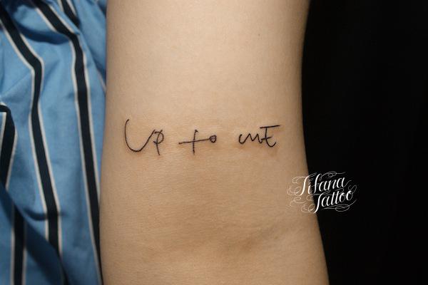 手書き風レタリングタトゥー タトゥー 一覧 > Tattoo by Mica 2017.05.30 手書き風のレタリングを腕の内側に彫った文字のタトゥー|刺青作品です。所要時間の目安は30分以内です。 Style ガールズ レタリング Motif 文字・数字 Size ワンポイント Body parts 腕