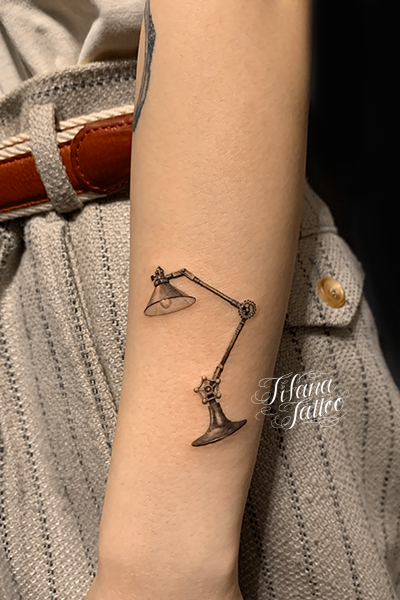デスクライトのファインライン・タトゥー 2022.08.28 デスクライトを繊細な技法で表現したファインライン・タトゥー。所要時間の目安は2時間半前後です。 Style ファインライン ガールズ 洋柄 Motif アクセサリー Size タバコサイズ Body parts 腕