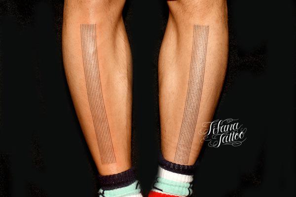 直線のタトゥー タトゥー 一覧 > Tattoo by AKI 2017.10.24 ふくらはぎから足首にかけて直線のラインを彫ったタトゥー|刺青作品です。所要時間の目安は3時間前後です。 Style メンズ 洋柄 Motif 図形 Size CDジャケット Body parts 脚