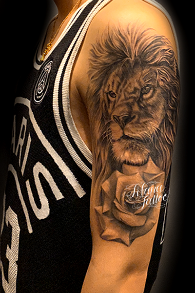 ライオン|薔薇のタトゥー タトゥー 一覧 > Tattoo by Naoto 2021.08.22 ライオン、薔薇|バラをひとつのデザインにまとめたチカーノ・タトゥー。所要時間の目安は15時間前後です。 Style メンズ チカーノ・ブラック&グレイ 洋柄 Motif 動物 植物 Tattoo Tag ライオン 薔薇、ローズ Size ハーフスリーブ Body parts 腕