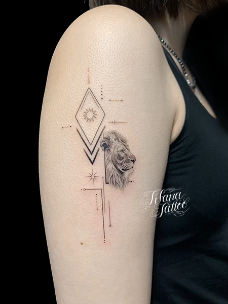 ライオンの横顔とジオメトリック・タトゥー タトゥー 一覧 > Tattoo by AKI 2024.11.10 ライオンの横顔にジオメトリックなデザインを組み合わせたファインライン・タトゥー。所要時間の目安は4時間半前後です。 Style ファインライン ガールズ 洋柄 Motif 動物 図形 Tattoo Tag ライオン 幾何学模様 Size CDジャケット Body parts 腕