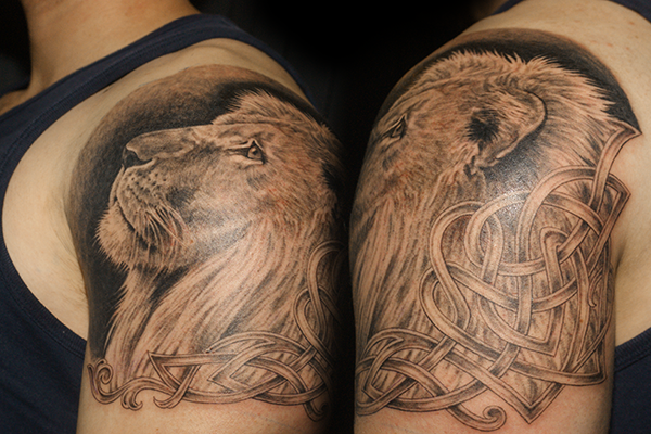 ライオンのタトゥー タトゥー 一覧 > Tattoo by Mica 2020.05.19 ライオン、セルティックの民族模様をひとつのデザインにまとめた作品。所要時間の目安は6時間前後です。 Style メンズ チカーノ・ブラック&グレイ 洋柄 Motif 動物 Tattoo Tag ライオン Size CDジャケット Body parts 肩