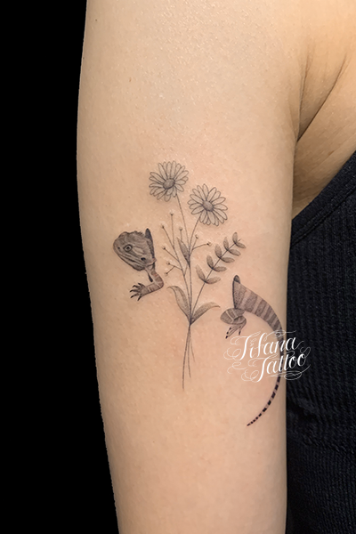 蜥蜴と花のファインライン・タトゥー タトゥー 一覧 > Tattoo by AKI 2023.10.30 蜥蜴|トカゲ、植物をひとつのデザインにまとめたファインライン・タトゥー。所要時間の目安は4時間前後です。 Style ファインライン ガールズ 洋柄 Motif 爬虫類 Tattoo Tag 蜥蜴、トカゲ Size iphoneサイズ Body parts 腕