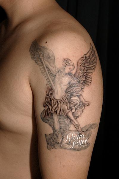 大天使ミカエルのタトゥー タトゥー 一覧 > Tattoo by Kaz 2015.01.27 大天使ミカエルのモチーフをデザインしたタトゥー|刺青作品です。所要時間の目安は7時間前後、2回で完成するサイズです。 Style メンズ チカーノ・ブラック&グレイ 洋柄 Motif 天使・悪魔 Size B5サイズ以上 Body parts 肩