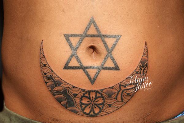 和柄模様の月のタトゥー タトゥー 一覧 > Tattoo by Yosh 2015.09.21 へその周りの六芒星の下部に三日月をベースにした形の中に和柄の波模様、鯨の尾、桜をデザインしたシンメトリーな構図のタトゥー|刺青作品です。所要時間の目安は2時間半前後です。 Style メンズ 和柄 Motif 宇宙 シンメトリー Tattoo Tag 月 Size CDジャケット Body parts 腹