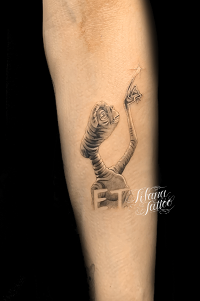 E.T.のファインライン・タトゥー タトゥー 一覧 > Tattoo by AKI 2022.02.28 ETを繊細な技法で表現したファインライン・タトゥー。所要時間の目安は4時間前後です。 Style ファインライン メンズ 洋柄 Motif キャラクター Size iphoneサイズ Body parts 腕