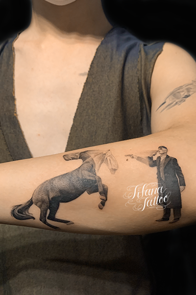 映画ワンシーンのタトゥー タトゥー 一覧 > Tattoo by AKI 2022.10.04 映画のワンシーンをモチーフにしたファインライン・タトゥー。完成までの来店回数の目安は2回です。 Style ファインライン メンズ ガールズ 洋柄 Size CDジャケット Body parts 腕