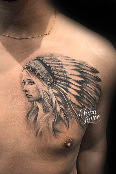 女性のインディアン・タトゥー タトゥー 一覧 > Tattoo by Naoto 2020.11.04 女性にインディアンの装飾を組み合わせたチカーノ・タトゥー。所要時間の目安は8時間前後です。 Style メンズ チカーノ・ブラック&グレイ 洋柄 Motif 羽・翼 Tattoo Tag インディアン 女 Size CDジャケット Body parts 胸