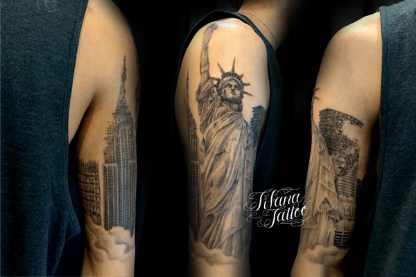NEW YORKのランドマーク・タトゥー タトゥー 一覧 > Tattoo by Mica 2020.11.01 自由の女神、ニューヨークの街並み|風景をひとつのデザインにまとめたチカーノ・タトゥー。所要時間の目安は15時間前後です。 Style メンズ チカーノ・ブラック&グレイ 洋柄 Tattoo Tag 風景 Size ハーフスリーブ Body parts 腕