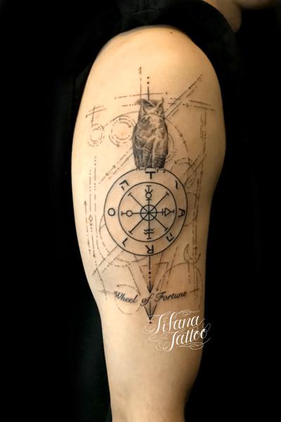 フクロウ|ジオメトリックタトゥー タトゥー 一覧 > Tattoo by AKI 2020.03.19 フクロウ|梟、幾何学模様をひとつのデザインにまとめたジオメトリックタトゥー。所要時間の目安は5時間前後です。 Style メンズ 洋柄 Motif 鳥 図形 Tattoo Tag 幾何学模様 梟、フクロウ Size B5サイズ以上 Body parts 腕