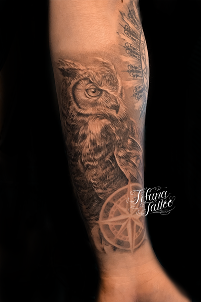 梟|コンパスのファインライン・タトゥー タトゥー 一覧 > Tattoo by Naoto 2023.05.07 梟|フクロウ 、コンパスをひとつのデザインにまとめたチカーノ・タトゥー。完成までの来店回数の目安は2回から3回です。 Style ファインライン メンズ チカーノ・ブラック&グレイ 洋柄 Motif 鳥 Tattoo Tag コンパス 梟、フクロウ Size B5サイズ以上 Body parts 腕